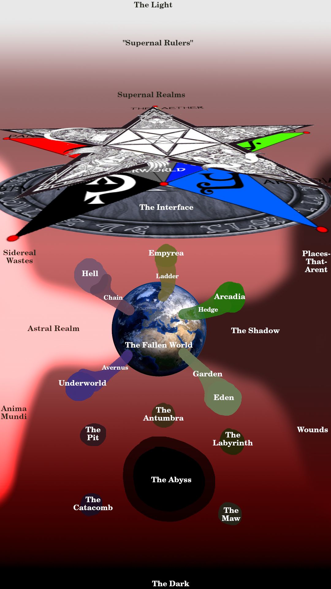 Light Supernal Realms Astral Realms Shadow Realms Earth Liminal Realms Reflected Realms Abyss Abyssal Realms Dark